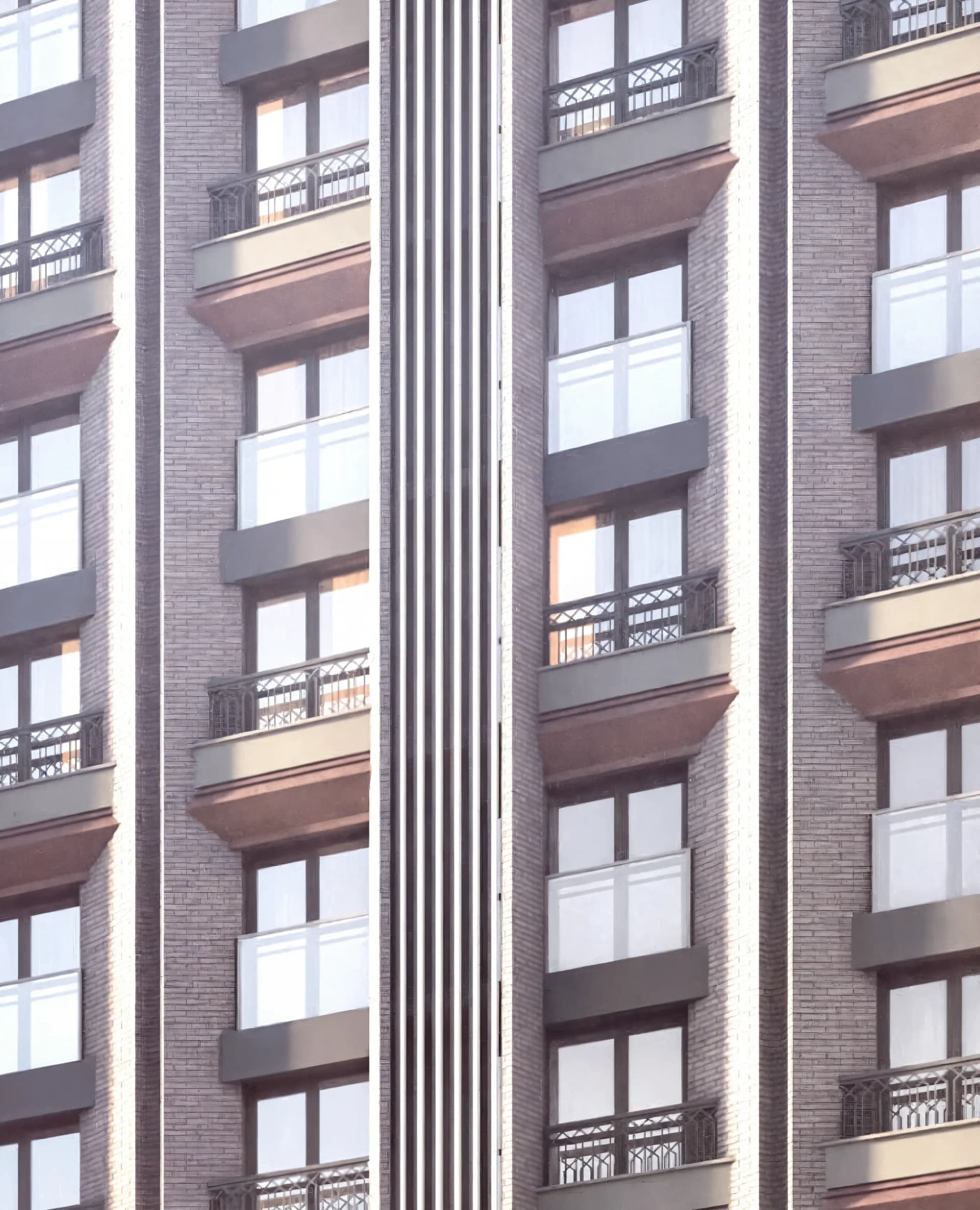 Уникальный облик фасада подчеркивают изящные французские балконы. Комбинирование двух типов материалов в ограждениях создает тонкую игру фактур, гарантируя резидентам исключительную безопасность и эстетический комфорт
