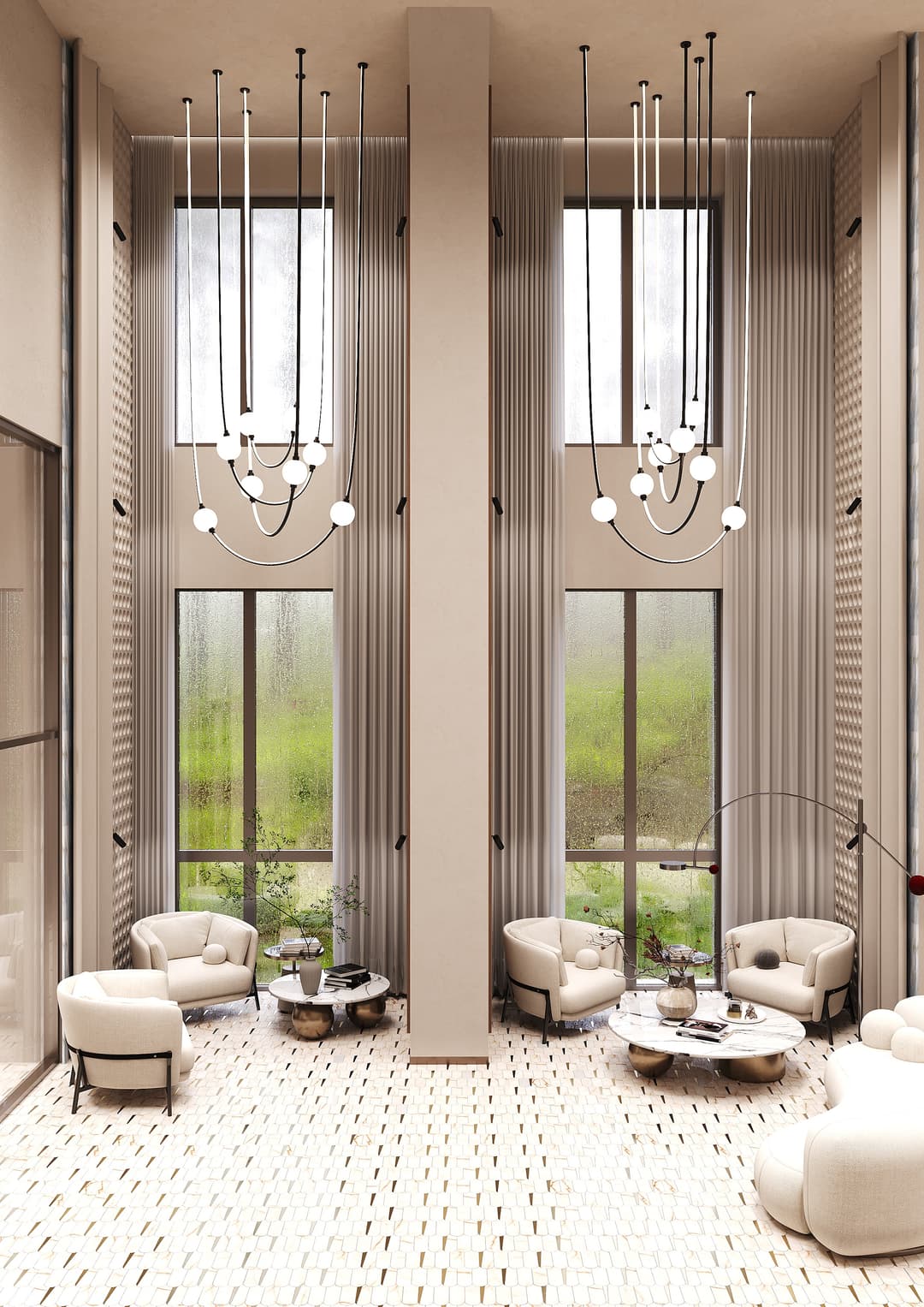 Бескрайние панорамные виды наполняют интерьер естественным светом, создавая ощущение свободы и масштаба